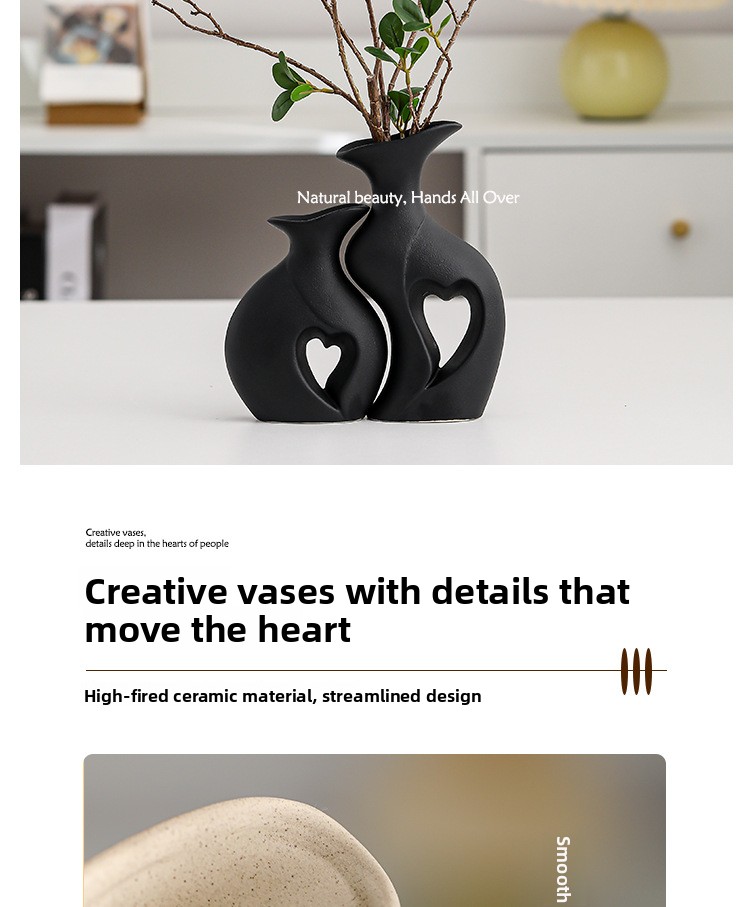 Creative Design: Unique heart-shaped ceramic vases with modern aesthetic appeal