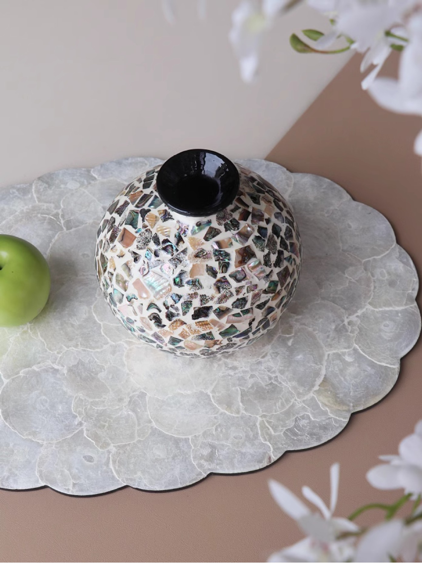 Natural Material: Made from authentic Vietnamese seashells combined with resin for a unique organic aesthetic