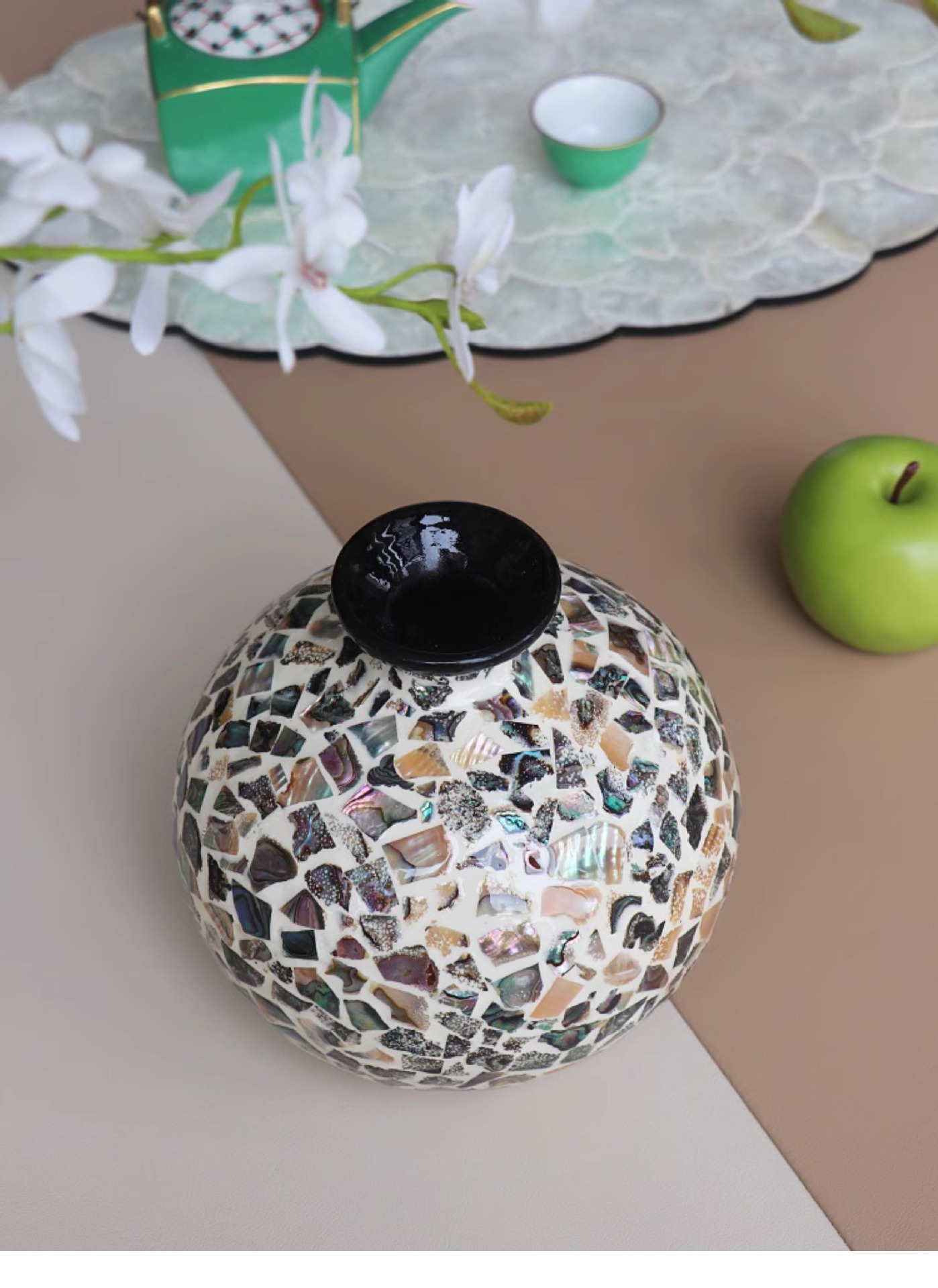 Decorative Craft: Inlaid shell surface technique enhances visual texture and elegance